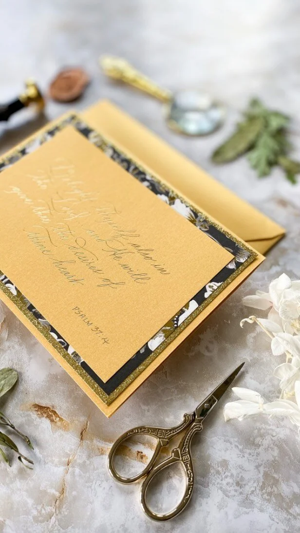 I’m a Christian mama artist who loves Jesus, singing, playing piano, and of course, calligraphy. I believe it’s important to do everything from the heart and with love. Perhaps I get it from my own mama, but that’s what keeps me striving to do better and always give my very best. When you’re looking for beautiful calligraphy for envelopes, events, keepsakes, and meaningful, joyful handmade cards, you’ll find me eagerly awaiting to serve you. Currently, I ship anywhere in the United States.