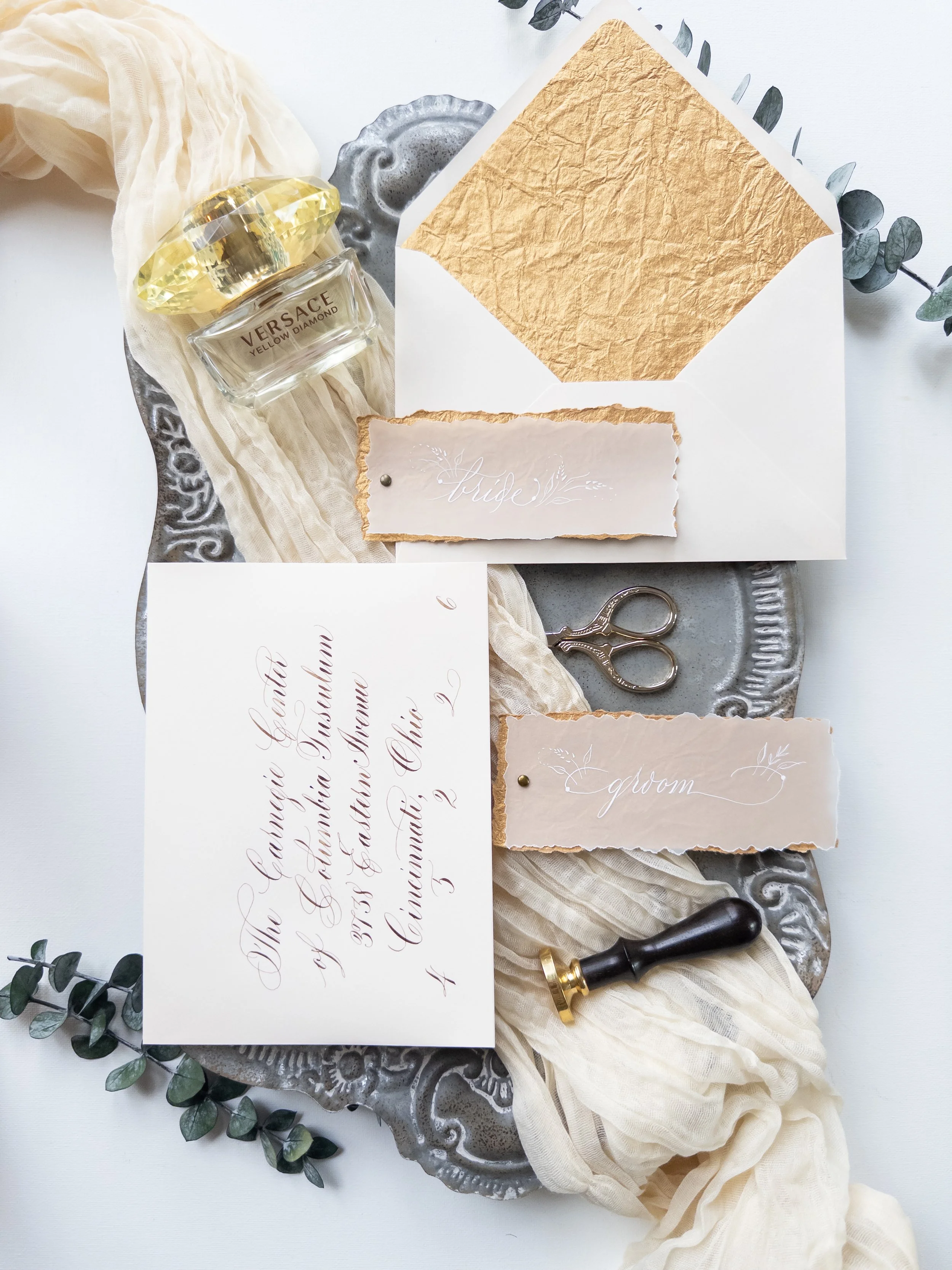 Wedding Calligraphy - Styled Wedding Day Flat Lay